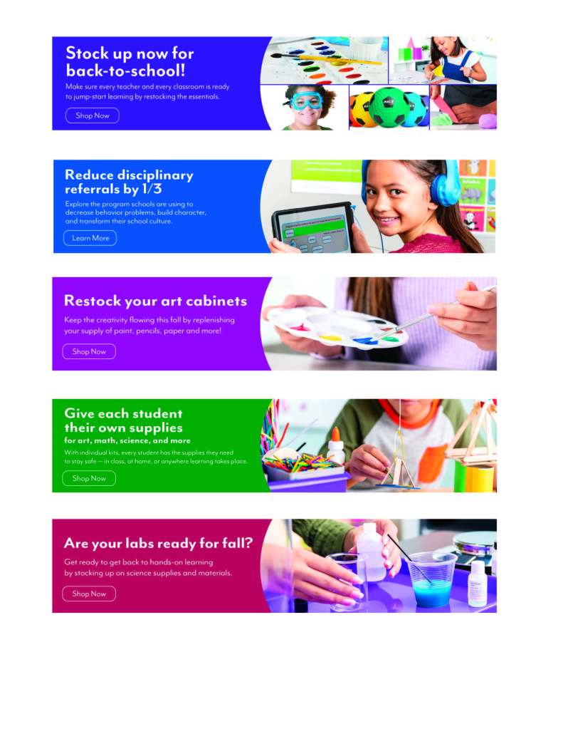 Nasco Education serves several different subject areas across K–12 education, with 2 to 3 catalogs mailing annually for each subject area.
